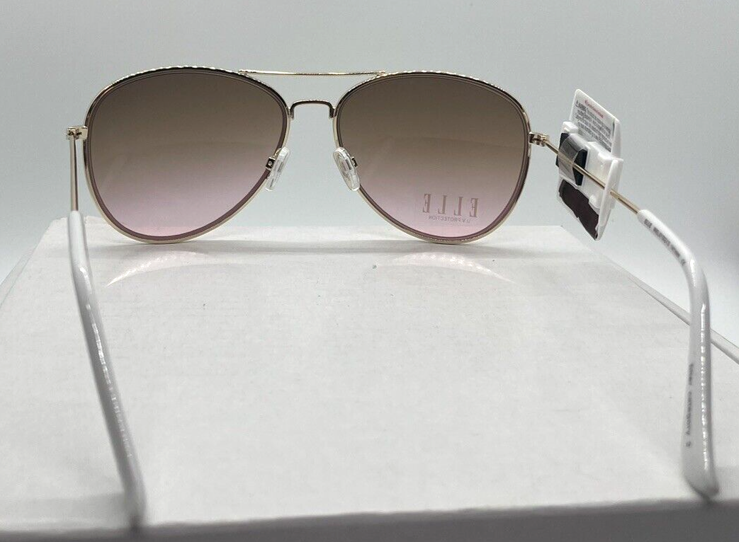 ELLE Aviator Sunglasses Gold frame Brown Rose Pink tinted lens new w/ tag Add a touch of sophistication to your summer look with these ELLE Aviator Sunglasses. The gold frame and rose tinted lens create a perfect blend of metal and style. These sunglasses are brand new with tags and perfect for women. The ELLE model is perfect for those who love to keep up with the latest fashion trends. These sunglasses are great for a day out shopping or relaxing on the beach. USA buyers only.