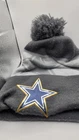 The product is a New Era beanie featuring a multicolor design as part of the Salute To Service collection for the Dallas Cowboys. It is officially licensed by the National Football League (NFL) and is a great accessory for fans of the team.
