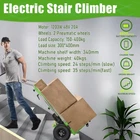 About this item 【Electric Stair Climber】This stair climbing hand truck is made of aluminum alloy frame, foldable toe plate, non-slipping rubber tyres makes it lightweight and sturdy guaranteed to last. and powered by fast plug design lithium battery.Solid precision steel load-bearing frame is safe and reliable to use. 【Sturdy Material】 The electric climbing machine adopts thickened S-shaped support arms to enhance toughness, which is sturdy and not broken. The paint grade storage board is wear-resistant and corrosion-resistant, and the 10.7mm solid precision steel load-bearing frame is safe and reliable to use 【Super Powerful】The electric climbing machine is equipped with a 1200W brushless strong motor, which is more efficient. With an extremely fast speed up to 35 steps/min and standby time up to 6-8 hours with one time full charge. Its load capacity is up to 880 lbs. It enables you manoeuvre like a hand truck,can transport heavy objects. 【Easy to Use】This hand truck dolly equipped with point touch operation button,ergonomically designed handle and auto-edge brake system allow you move confidently and safely on all stairs. slow: 24 steps/minute, fast: 35 steps/minute. Providing excellent maneuverability and stability. Single operator required. 【Multipurpose】This stair climbing cart allows you to maintain an upright posture on the stairs and keep maximum control over the goods being transported. Suitable for building materials, bathroom, bottled water, household appliances, office, industrial equipment, logistics equipment, gas distribution, factory materials, and moving, etc Product Description W-JIAJIEBTH POWERED STAIR CLIMBING HAND TRUCKS DOLLY W-JIAJIEBTH is a leading global provider of material handling equipment who aims to ease your way to anywhere. As a professional material handling solution provide, W-JIAJIEBTH offers a one-stop service that integrates R&D, designing, manufacturing and sales, etc.. W-JIAJIEBTH has exported its stair climbers to more than 50 countries and obtained a sound reputation worldwide. 4 REASONS FOR CHOOSING: Baked paint board has strong wear resistance, corrosion resistance, and stain resistance Adopting thickened S-shaped support arms to enhance toughness without fracture High capacity industrial lithium batteries with long-lasting battery life Brushless motors have longer silent life and higher efficiency W-JIAJIEBTH STAIR CLIMBING HAND TRUCKS Auto-balancing itself when climbing stairs: All-in-one wired controller is easy for operation; Controller protection system for the motor; Easy operation on flat ground with castor design ; Speed mode available to meet different requirement; More stable when going up and down the stairs; Adjustable Safety Belt: Use a safety belt to secure the goods to prevent the goods from being scattered; Large-capacity Lithium Battery: the LED displays the battery power status, and the power usage can be observed at any time during use. FAQ Q1. Will this work on carpeted stairs? How about wood, cement, etc.? A: Yes, this will work on carpeted stairs as well, but only if the carpet is fully attached to the stairs. This stair climber will work indoors and outdoors alike. Cement, Wood, Iron and all types of stairs. Q2. Are there any specific requirements for someone to operator this stair climber? A: Operator should be in good physical health. We recommend operator should be between the ages of 18-70. Q3. How long does the battery last? A: It depends on how much weight is being carried. The heavier the load, the quicker the battery will die. Luckily, they feature a display that shows you the battery capacity and voltage to know well ahead of time if it’s going to run out. Q4. What kind of faults does the machine generally have, is it easy to repair? A: Only the wrong operation will cause the machine to malfunction, so please read the manual carefully before use. When you met problems, please send us some picture/video, our engineer will check it and tell you how to repair. Q5. Could the stair climber be overloaded? A: No. It can't. EASE YOUR WAY TO ANYWHERE This stair climbing cart allows you to maintain an upright posture on the stairs and keep maximum control over the goods being transported. Stair Climber is ideal for carrying home appliance, office equipment,vending machine,safety box,oil drum etc with weight up to 880lbs. Notes: This stair climber is recommended to be used below 1000 meters altitude, and the environmental humidity is required to be within the range of 45%-85% (no coagulated snow). Do not allow other people to stand behind the machine during operation! Prevent the machine from tipping over due to improper operation and cause danger to the operator.