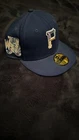 This New Era 59FIFTY Pittsburgh Pirates Baseball Cap is a must-have for any fan. The cap features a blue background with a mix of cyan,white,purple and pink for the logo and 76th World Series patch, making it a great addition to any collection. Made of polyester and manufactured in Bangladesh, this cap is of high quality and will last for a long time. With a size of 7 (55.8 cm) it is perfect for any man who loves baseball. Get yours now and show your support for the Pirates! notes - all original stickers are still intact