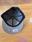 Show your team spirit with this stylish New Era 59Fifty baseball cap in Atlanta Braves Storm Dark Gray and Black. Made of polyester and rayon, this fitted cap is perfect for any occasion, whether it's for travel, casual wear, or workwear. The two-tone gray and black design, along with the featured refinements of a classic sports theme and Major League (MLB) league, make this cap a must-have for any baseball fan. The cap is available in size 7 1/2 and is suitable for both men and women. It is part of the New Era 59Fifty product line and is an ideal accessory for all seasons, including winter, summer, fall, and spring. Get your hands on this unisex cap without worrying about the condition and add it to your collection today!