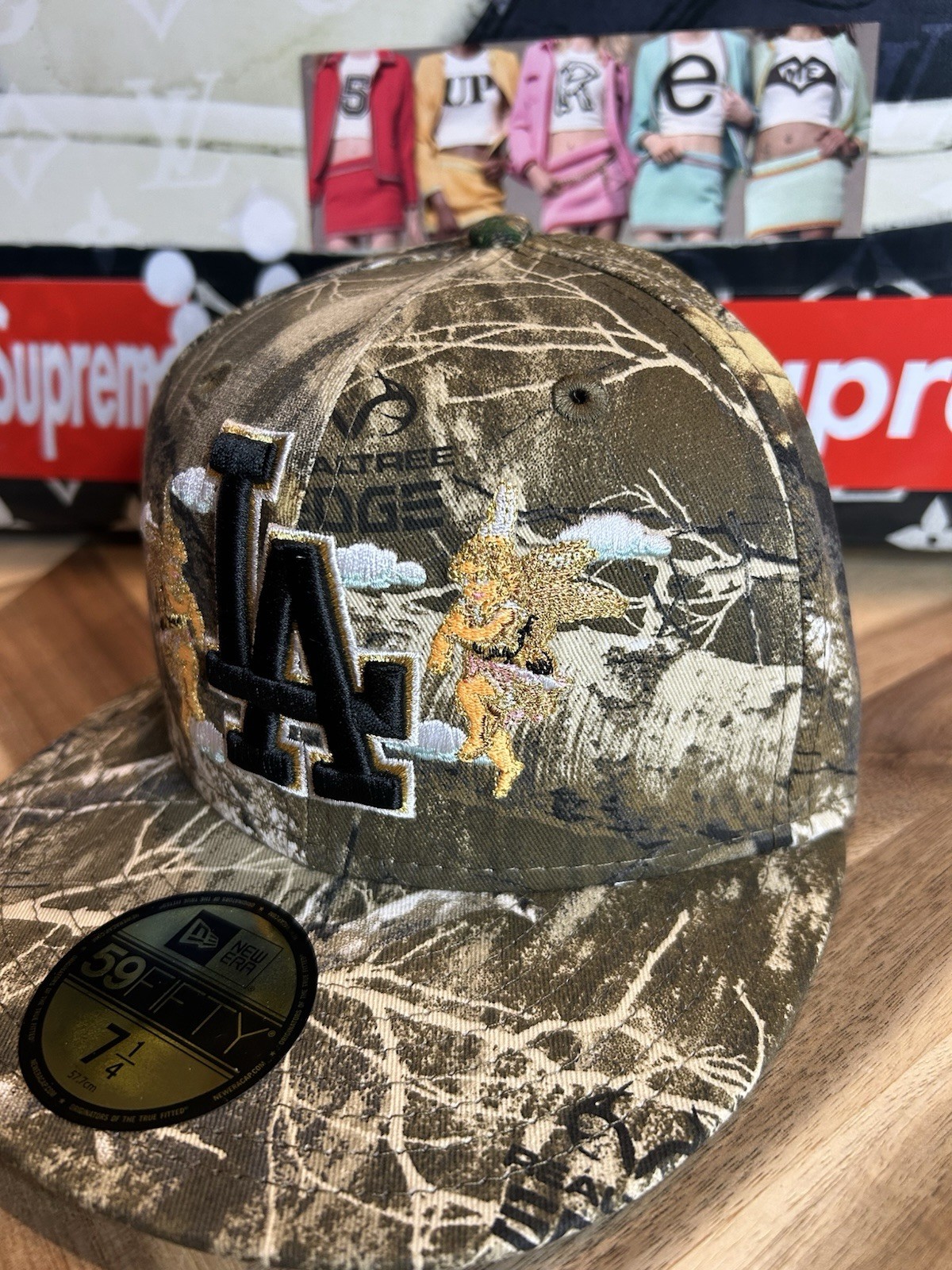 The New Era Los Angeles Dodgers Real Tree Fitted Angels Metallic 7 3/8 baseball cap is a rare and exclusive piece featuring a camo pattern in polyester material. This fitted cap is part of the 59fifty product line and is adorned with various characters and themes such as Myfitteds, Saucy, Astros, and Stained Glass. Perfect for casual occasions during the Summer, Fall, or Spring seasons, this cap is sure to make a statement with its unique design and high-quality construction.