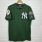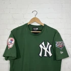 The New York Yankees Logo Select Color Flip Green T-Shirt features a chenille applique Yankees logo at the left chest with team patches at each sleeve and an embroidered team script at the rear. See measurements for accurate fit Shoulder to hem 28 inches Pit to pit 21.5 inches All measurements are done flat lay