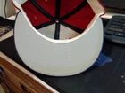 This is a new hat ,it was in my suit case for a couple of years, Has a little fading on the inside of the rim, could be cleaned. Has a picture of a big C on the front with some waves. Hat size is a 7.