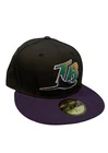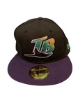 The product is a New Era Tampa Bay Devil Rays MLB Cooperstown Collection Fitted Hat in size 7 1/2. This black hat features the iconic Tampa Bay Devil Rays team logo and is designed for fans of the Major League Baseball team. It is a stylish way for fans to show their support and loyalty to the team during games or everyday wear. Made by New Era, a reputable brand known for their high-quality sports apparel, this hat is a must-have for any Tampa Bay Devil Rays enthusiast.