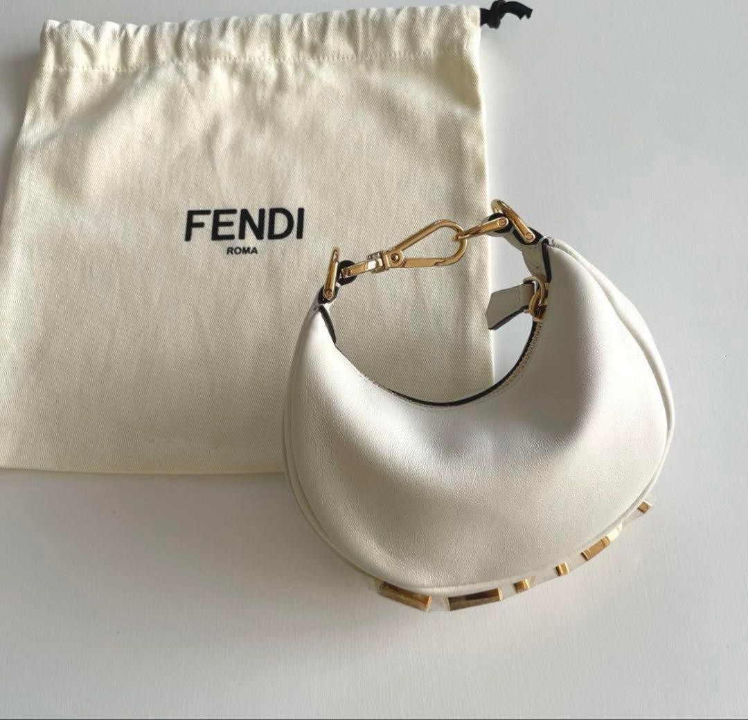 Description Thank you for viewing this listing. This is a brand new FENDI Nano Fendigraphy in white calf leather . A super cute mini-size hobo bag featuring the iconic FENDI lettering in a vintage gold finish and a zip closure. ✨ Features Zipper closure nano hobo design Adjustable strap with clip: can be attached to a larger bag or worn on the wrist Hooks for a shoulder strap (as designed) Gold-tone metal hardware Made in Italy 📏 Size (Approx.) Height: 14 cm Width: 16.5 cm Depth: 5 cm 📦 Included Dust bag Perfect as a bag charm, mini accessory, or collectible FENDI piece. All our products are 100% authentic, so you can shop with confidence. Please add our store to your favorites! If you're looking for a Japanese product, please feel free to contact us. Shipping We ship via FedEx, DHL, and Japan Post. All shipments come with a tracking number, so you can order with confidence. You can check the status of your shipment at any time. We only ship to addresses registered with eBay. If you would like to ship to a different address, please change your address on eBay before placing your order. Payment We usually ship within 2-5 business days after confirming your payment. Delivery times may vary depending on the product, so please check the delivery time for the product you purchased. International Buyers - Please Note: For U.S. Buyers (Shipping to the United States): Import duties, taxes, and related customs fees are already included in the item price or shipping cost (DDP: Delivered Duty Paid). You will not be required to pay any additional customs charges upon delivery. Note: Items over USD 2,500 per transaction (including shipping) or those under the Authenticity Guarantee service may be excluded. For Buyers Outside the U.S.: Import duties, taxes, and charges are not included in the item price or shipping charges. These costs are the buyer’s responsibility. Please check with your country’s customs office to determine what these additional costs will be prior to bidding/buying. We do not mark merchandise values below value or mark items as "gifts" – U.S. and International government regulations prohibit such behavior.