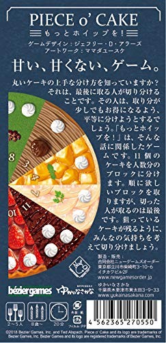 ✓ For U.S. buyers: All customs duties and fees are prepaid. You WILL NOT be charged any additional fees on delivery. Description Thank you for visiting the page! Ships with careful packing from Japan. Description Do you know how to divide a round cake well? It is the last person to take it that carves it. He will try to divide his share equally so that he can save as much as possible. More whip! is a game related to such a story. Divide the 11 cakes into blocks for each person. Take the blocks you want in order, but the person who cut them is the last to take them. Cut the cake into pieces with everyone's feelings in mind so that the cake you are aiming for will remain. Written by Geoffrey D Alers Artwork by Mamada Yusuke Piece o' Cake Playtime: 20 minutes 8 year's old and up Shipping FedEx, Japan Post, USPS ,etc (Not available for selection) Terms of Sale *A tracking number is provided for all orders. *In principle, the package will be delivered within 4 weeks after the tracking number is uploaded, but delays may occur depending on international conditions. Please contact your local post office for details. International Buyers - Please Note: For non-U.S. buyers:Import duties, taxes, and charges are not included in the item price or shipping cost. These charges are the buyer's responsibility. Please check with your country's customs office to determine what these additional costs will be prior to bidding or buying.