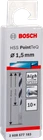 New Genuine Bosch 2608577183 HSS Twist Drill Bit PointTeQ For rotary drills/drivers Diameter (D) mm: 1.50 Working length mm: 18 Shank diameter (d) mm: 1.5 Choose a pack size: 10 Pcs For rotary drills/drivers HSS Twist Drill Bit PointTeQ enables fast drilling in metal due to PointTeQ tip design Self-centering tip prevents wandering, making quick and easy drilling starts possible Increased drilling rate generates less heat and wear Cylindrical shank compatible with three-jaw drill chucks. Fast Drilling in Metal HSS Twist Drill Bit PointTeQ enables fast drilling in metal due to PointTeQ tip design Increased drilling rate generates less heat and wear PointTeQ tip design remains sharp and ensures continuous durability Low risk of breakage due to highly elastic body, black-oxide coated flute; DIN 338, Type N, 135-degree tip There is a low risk of breakage, especially for drill bits below 6 mm in diameter as the bit is manufactured to have a highly elastic body. Its black-oxide coated flute provides fast chip removal. The HSS Twist Drill Bit PointTeQ is manufactured to DIN 338. The drill bit is Type N (flute angle) with a tip of 135 degrees. It has a cylindrical shank system and is intended for use in drill stands and drill drivers.