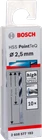 New Genuine Bosch 2608577193 HSS Twist Drill Bit PointTeQ For rotary drills/drivers Diameter (D) mm: 2.50 Working length mm: 30 Shank diameter (d) mm: 2.5 Choose a pack size: 10 Pcs For rotary drills/drivers HSS Twist Drill Bit PointTeQ enables fast drilling in metal due to PointTeQ tip design Self-centering tip prevents wandering, making quick and easy drilling starts possible Increased drilling rate generates less heat and wear Cylindrical shank compatible with three-jaw drill chucks. Fast Drilling in Metal HSS Twist Drill Bit PointTeQ enables fast drilling in metal due to PointTeQ tip design Increased drilling rate generates less heat and wear PointTeQ tip design remains sharp and ensures continuous durability Low risk of breakage due to highly elastic body, black-oxide coated flute; DIN 338, Type N, 135-degree tip There is a low risk of breakage, especially for drill bits below 6 mm in diameter as the bit is manufactured to have a highly elastic body. Its black-oxide coated flute provides fast chip removal. The HSS Twist Drill Bit PointTeQ is manufactured to DIN 338. The drill bit is Type N (flute angle) with a tip of 135 degrees. It has a cylindrical shank system and is intended for use in drill stands and drill drivers.