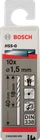 New Genuine Bosch 2608595050 HSS Twist Drill Bit Ground Diameter (D) mm: 1.50 Working length (L1) mm: 18 Total length (L2) mm: 40 Choose a pack size: 10 Pcs For rotary drills/drivers HSS Twist Drill Bit offers solid drilling for standard usage with metal 135-degree self-centring split-point tip combines active cutting and perfect centring without wandering Precision-ground bit made of HSS enables fast results Cylindrical shank compatible with three-jaw drill chucks. Drilling with High Precision HSS Twist Drill Bit offers solid drilling for standard usage with metal Precision-ground bit made of HSS enables fast results No need to pre-punch or pilot drill up to 10 mm-diameter Manufactured to DIN 338, drill bit Type N (flute angle) with a 135-degree tip, diameter tolerance h8 The HSS Twist Drill Bit Ground is manufactured to DIN 338. The drill bit is Type N (flute angle) with a 135-degree tip and a diameter tolerance of h8. It has a cylindrical shank system (shank equal to drill bit diameter) and is intended for use in drill stands and drill drivers.