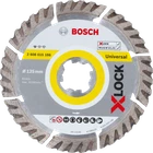 New Genuine Bosch 2608615166 X-LOCK Standard for Universal Diamond Cutting Disc For small angle grinders Diameter mm: 125 Bore diameter mm: 22.23 Cutting width mm: 2.0 Choose a pack size: 1 Pcs For small angle grinders X-LOCK Standard for Universal Diamond Cutting Disc provides reliable cuts in universal building materials Optimised diamond matrix delivers solid results thanks to the disc's high-quality standards Bosch's diamond competence centre in Switzerland ensures consistent quality With 22.23 mm bore for standard locking nut angle grinders. Reliable Cuts in Universal Building Materials X-LOCK Standard for Universal Diamond Cutting Disc provides reliable cuts in universal building materials Bosch's diamond competence centre in Switzerland ensures consistent quality Keyless X-LOCK system for fast and convenient disc changes Changing cutting discs is fast and convenient thanks to the keyless X-LOCK system. X-LOCK cutting discs also fit standard angle grinders.
