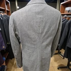 Size: 46r USA 58 italy slim ****with 23-inch arm length*** and a **jacket length of 29.5 inches**. For complete measurements, see photo #2 To see exactly how we measured, see the last series of photos. Extra fabric for adjustments: Arms: 2 inches Condition: new with flaw and shortened arm length. **Small snag on upper right inner arm see last photo** spare buttons are still in the black pouch on the chest pocket. Textured Linen cotton, soft shoulder, ventless, horn buttons, unstructured, midweight Return policy: We offer free shipping and no returns. We can not afford to offer both in the highest return category on eBay. It becomes very expensive to mail out items for free for people to try on if they are not confident in checking the measurements in picture #2. If you prefer to have the ability to return the item and pay $12.95 shipping, please send us a message, and we can change the listing format to offer returns. The $12.95 shipping cost would break us out even in the case you needed to return the item. You must contact us before purchasing as some of our items are on consignment and we will need to get the owners approval before proceeding. We ship the next business day after the payment is made. A discounted, expedited shipping option is available at checkout. If you need help figuring out how to buy a blazer or suit on ebay that actually fits you properly. There are some fantastic videos on You