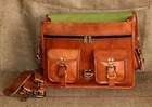 100% genuine goat leather messenger bag with a durable inner lining made of canvas. Designed to carry mini laptops, tab, documents or other personal belonging. A genuine hand made product using chemical/dye-free leather. Natural oils and light have been used to obtain the style of the leather - chemical free! This bag features a wonderful unique and vintage look, designed to carry mini laptops, tab, documents, personal belongings. Perfect for the office, school or as a gift! Specifications: Made from 100% genuine, strong, lightweight, durable goat leather, tanned without the use of chemicals Adjustable shoulder strap, half flap bag with strap lock & small front pocket. 3 big inner compartment for carrying tablet, smart phone's, tab's etc. 2 zipper compartments for important documents/paperwork etc. 2 small pocket in front & 2 small pocket in side. Inner canvas lining Vintage leather wash Leather softens and darkens with use Handmade in India by experienced crafts people. Size - 12 X 16 X 5 inch