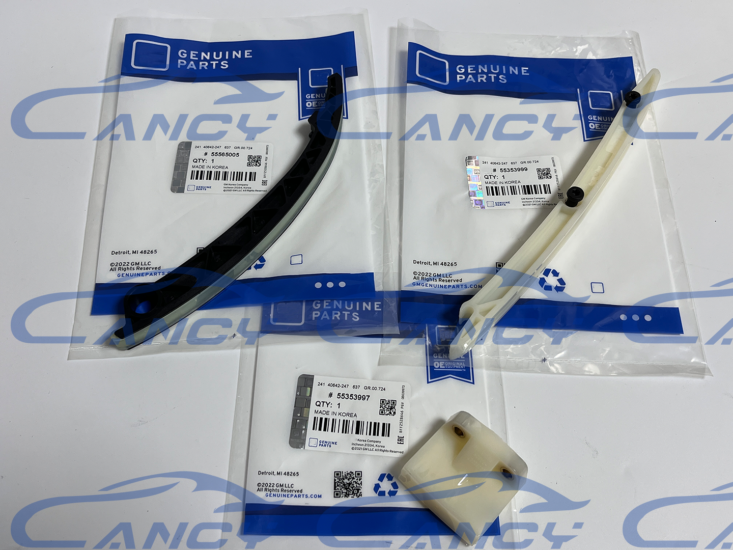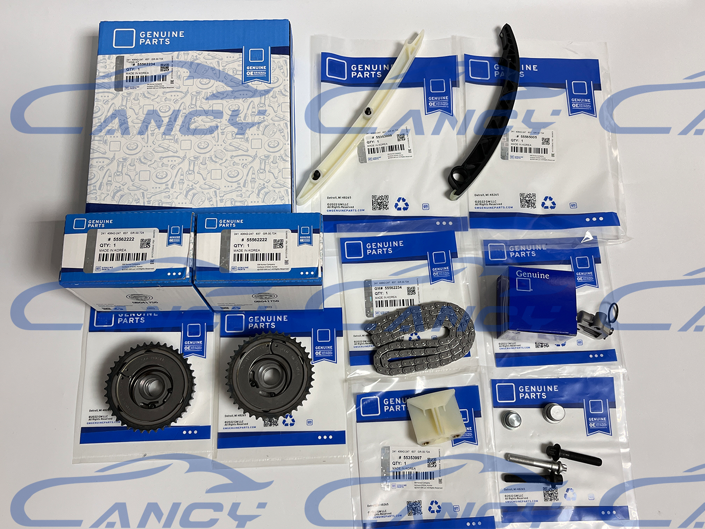 New OEM Timing Chain Kit VVT for 11-21 Chevrolet Cruze Trax Buick Encore 1.4L New OEM Timing Chain Kit VVT for 11-21 Chevrolet Cruze Trax Buick Encore 1.4L Car Application: 2013-2020 Buick Encore 1.4L 2011-2015 Chevrolet Cruze 1.4L 2016 Chevrolet Cruze Limited 1.4L 2012-2020 Chevrolet Sonic 1.4L 2013-2021 Chevrolet Trax 1.4L This Item Includes: 1 Timing Chain (130 link) 1 Cam Sprocket (20T) 2 Engine Variable Valve Timing Sprockets (40T) 3 Guides 1 Tensioner Bolts Purchase Notes: Dear customers, before placing an order, please check the item information carefully to confirm that it is suitable for your car. If you are not sure, please provide us with the Vehicle Identification Number/VIN number and picture of the original part . Thank you!!
