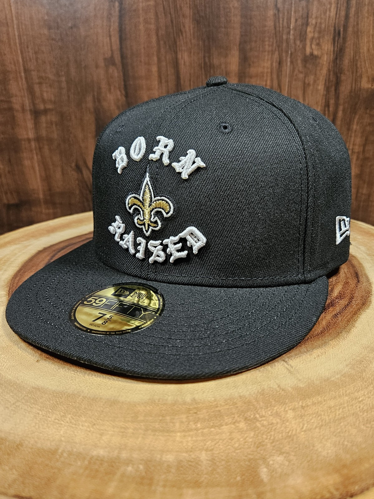 Elevate your headwear collection with the New Orleans Saints Born X Raised New Era 59Fifty Fitted Hat. This cap is a staple for any dedicated NFL fan, featuring the iconic team colors and logo. The size 7 5/8 ensures a comfortable fit for most, with a classic baseball cap style that never goes out of fashion. Crafted by New Era, known for their quality and durability, this hat is designed for both style and longevity. Perfect for wearing to games or as part of your everyday wardrobe, it's versatile enough to complement any outfit. Whether you're cheering from the stands or out on the town, this cap is sure to make a statement.