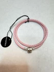 New PANDORA Pink LEATHER 925 Silver Double Wrap Charm BRACELET 18 Cm