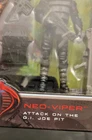 The product is a new, sealed action figure of the character Neo-Viper from the G.I. Joe franchise. Manufactured by Hasbro in 2017, this figure is part of the G.I. Joe Rise of Cobra series and comes with accessories such as a gun and assault rifle. The figure is themed around military and adventure, featuring a black color scheme and made of plastic. It is designed for children aged 5 & up years and is an original licensed reproduction from the G.I. Joe series by Paramount Animation. The packaging includes artwork from the movie and the figure was manufactured in China during the 2000-2009 time period. See pictures for details