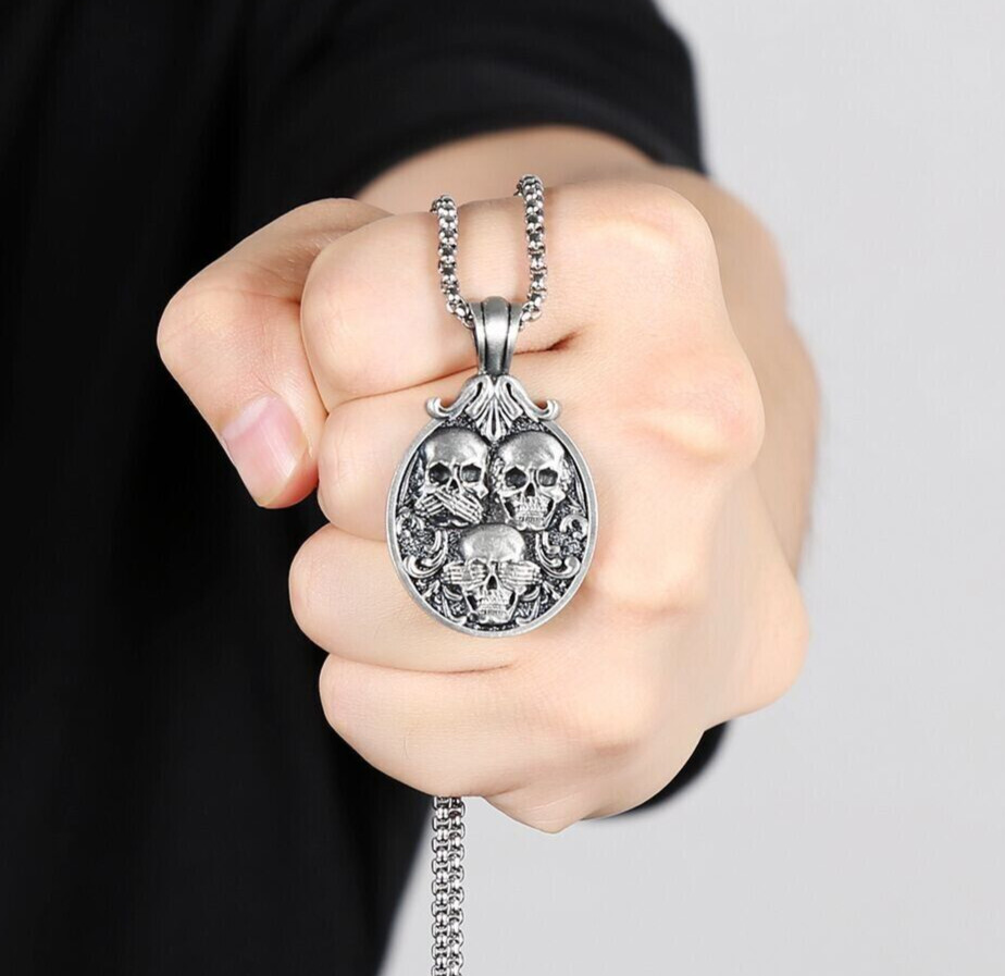 New Speak No Evil, Hear No Evil, See No Evil Skull Pendant Necklace Hot Jewelry Metal: 316L Stainless Steel Pendant Size:4.7*2.9cm Chain:65cm long Packing: 1pc/opp bag Pls note: Our listing price includes the value of goods,packaging cost,and export taxes,not including international duties. Please contact us before you leave us any negative or neutral feedback,we will do our best to solve the problem asap. Your 100% satisfaction is our goal. Parcel use China international common air transport services, parcel no tracking number, parcel normal transport the United States, Canada, Australia, Britain takes about 15-30 days, other countries about 30 days or so. PAYMENT INFORMATION: We only accept PAYPAL and Payoneer ! Within five days after the auction, must pay cost, if there are other reasons for delayed payment, please inform me. RETURN POLICY: If you are satisfied with the purchase and our total service, your comment is very important in our business success. Please take a minute to leave us a positive feedback with an overall Detailed Selling Rating (DSR) of 5. Any questions, pls. contact us via ebay message or email us.We will reply your message within 48 hours. If you do not receive our reply within 48 hours, pls. post a message again because sometimes our message system may block some emails. Notice to American Buyers Starting from May 5th, 2025, due to updates in US customs policies, our store has included all import tariffs in shipping costs. This means that American buyers do not need to pay any additional fees upon delivery. Thank you for shopping with us!