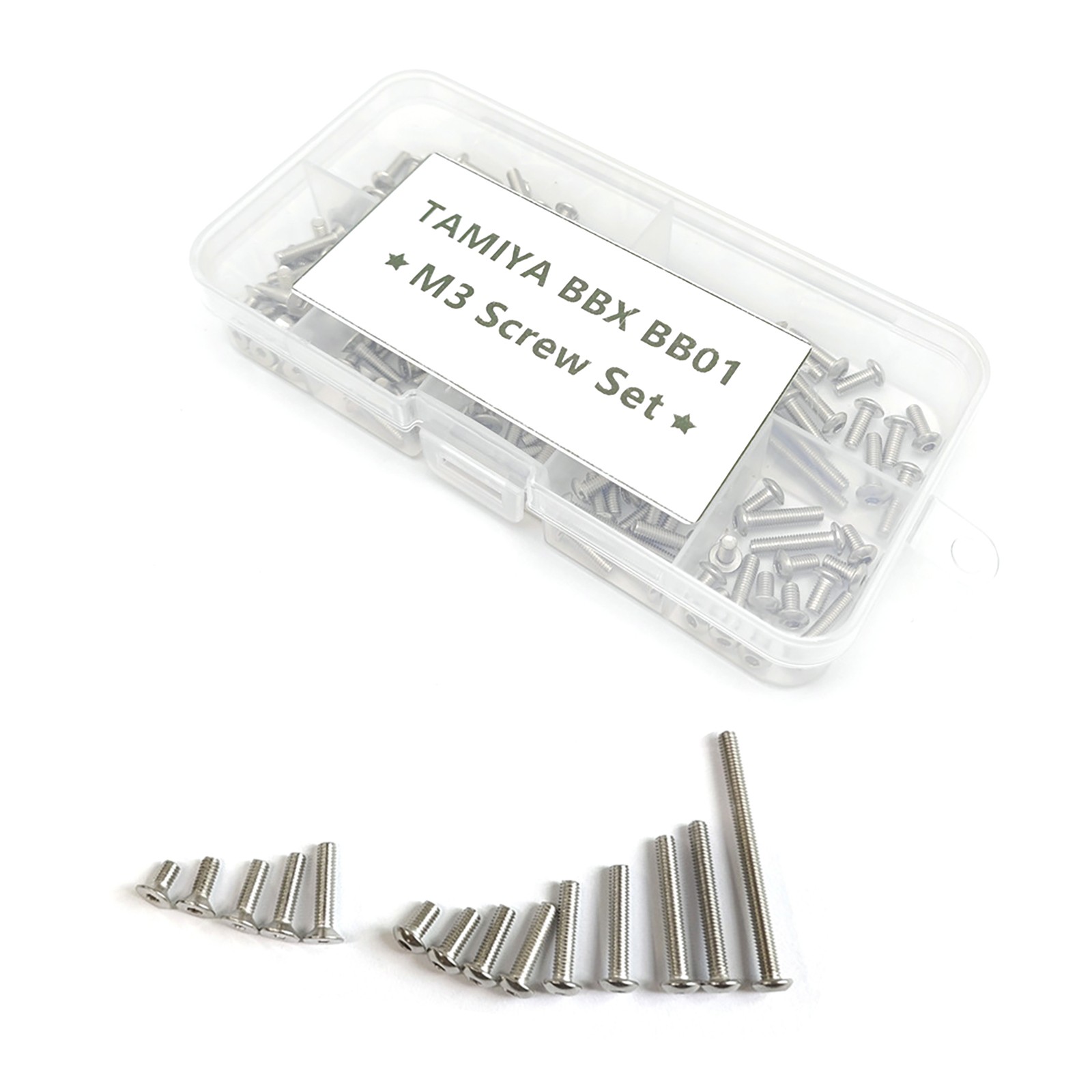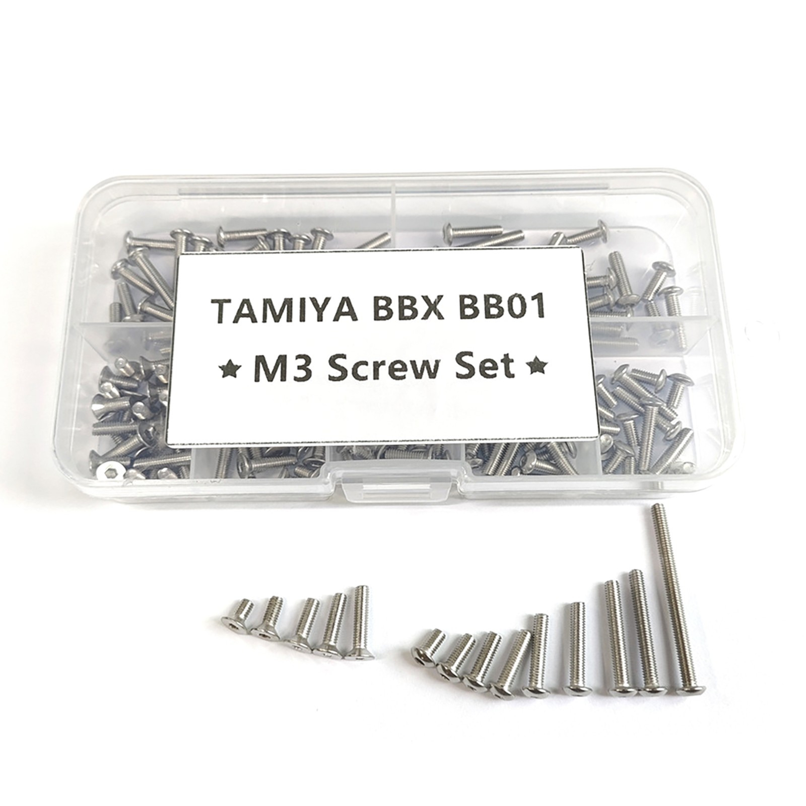 Product Description New Stainless Steel M3 Hex Screws Kits For TAMIYA 1/10 BBX BB-01 RC Buggy Car Features: Easy to carry and durable. Made of high quality metal material. Various sizes to meet your needs. Specifications: Material: Steel Color: Silver Model: For Tamiya BB01 BBX BB-01 1/10 RC Package includes: Hexagon Socket Button Head Screws M3x6 (11Pcs) M3x8 (8Pcs) M3x10 (13Pcs) M3x12 (7Pcs) M3x14 (4Pcs) M3x16 (14Pcs) M3x20 (2Pcs) M3x22 (2Pcs) M3x35 (2Pcs) Hexagon Socket Flat Countersunk Screws M3X6 (4Pcs) M3X8 (23Pcs) M3X10 (16Pcs) M3X12 (10Pcs) M3X14 (4Pcs) Shipping Returns Contact Us Payment 1. Items sent from US warehouse. 2.Receiving time = Processing time + Shipping time 3. Processing Time: Around 1-2 business Days 4. Shipping Time: 3-5 business day it may have a little delay during some holiday (such as Christmas),any problem ,please feel free to contact 1. 30 days warranty from the purchased date. Please contact us via email before returning the defective item. 2.Our warranty does not extended to any product that are physically damaged or that are not under normal operating conditions as result of misuse or improper installation on the buyer/user's part. 3.Return items should include the original packaging and all accessories. buyers MUST contact us for the returning address. 4.In all cases, buyers pay shipping fees at their own cost to return products for exchange or refund. We will be responsible for the postage of replacements. Refund will be made upon receipt of the returned item. Pls contact us if you have any problems,we will try our best to solve for you We accept all verified payment from eBay. Shipping 1. Items sent from US warehouse. 2.Receiving time = Processing time + Shipping time 3. Processing Time: Around 1-2 business Days 4. Shipping Time: 3-5 business day it may have a little delay during some holiday (such as Christmas),any problem ,please feel free to contact Returns 1. 30 days warranty from the purchased date. Please contact us via email before returning the defective item. 2.Our warranty does not extended to any product that are physically damaged or that are not under normal operating conditions as result of misuse or improper installation on the buyer/user's part. 3.Return items should include the original packaging and all accessories. buyers MUST contact us for the returning address. 4.In all cases, buyers pay shipping fees at their own cost to return products for exchange or refund. We will be responsible for the postage of replacements. Refund will be made upon receipt of the returned item. Contact Us Pls contact us if you have any problems,we will try our best to solve for you Payment We accept all verified payment from eBay. You may also like 2x 3-AAA Battery Holder Cylindrical Case Plastic For Flashlight Round Circular 8.28 USD 9.1 USD 9% off 22.5W Fast Charging 8 x 18650 Battery DIY Detachable Power Bank Shell Case 15.31 USD 16.82 USD 9% off New 16 Pin 1 Channel Lens Optical Pickup Laser Lens SF-P101N For Sanyo CD VCD 10.8 USD 11.87 USD 9% off 2pcs Analog Stick Joystick Replacement For PS5 Dualshock Wireless Controller b 8.0 USD 8.79 USD 9% off Replacement Silicone 22mm Width Watch Strap Bracelet For Garmin Approach S20 9.36 USD 10.29 USD 9% off EWelink WiFi Inching Relay Momentary Interlock Switch Module for Google Home a 15.58 USD 17.12 USD 9% off powered by