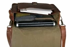 Green canvas fabric Internal 2 compartments and 2 zipper Front 1 big pocket Back side 1 zipper Thick adjustable strip Strong, light-weight goat leather, tanned without the use of chemicals Leather softens and darkens with use Color and texture of the leather varies Natural real leather smell, just like a luxury car or lounge suite Solid brass buckles and fixtures - will last for years Has a wonderful natural look, and feel Each bag is uniquely individual due to slight color and marking variations on natural leather Brand New Handmade Leather Bag without tag