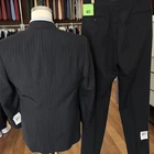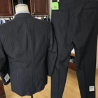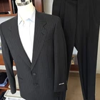 Size: 40r USA with 24 -inch arm length and a jacket length of 30.5 inches. Pants: 32x unfinshed inseam of 37 inches For complete measurements, see photos #2 and #3 To see exactly how we measured, see the last series of photos. Extra fabric for adjustments: Waist: 3 inches Inseam: unfinshed 37 inches Arms: 1 inch Color: charcoal with stripes Condition: all tags attached, Inseam still unfinshed, only flaw found was the jacket liner has discoloration from age in a few spots (see last photograph). No flaws to the suit fabric. No smells. Vintage 1970s, light shoulder pads, single vent, pleated, made in USA Return policy: We offer free shipping and no returns. We can not afford to offer both in the highest return category on eBay. It becomes very expensive to mail out items for free for people to try on if they are not confident in checking the measurements in picture #2. If you prefer to have the ability to return the item and pay $12.95 shipping, please send us a message, and we can change the listing format to offer returns. The $12.95 shipping cost would break us out even in the case you needed to return the item. You must contact us before purchasing as some of our items are on consignment and we will need to get the owners approval before proceeding. We ship the next business day after the payment is made. A discounted, expedited shipping option is available at checkout. If you need help figuring out how to buy a blazer or suit on ebay that actually fits you properly. There are some fantastic videos on You tub e