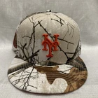 This is a New York Mets New Era 59Fifty Fitted Real Tree Hat in size 7 5/8. It is a baseball cap made of polyester with a Real Tree camouflage pattern. The hat is designed for men and is not signed or vintage. It is branded by New Era and manufactured in Bangladesh. It is a stylish and practical accessory for men's casual wear.