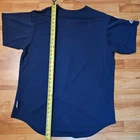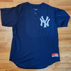 The product is a Majestic Cool Base Jersey for the New York Yankees in size L, designed for a baseball player in the Major League (MLB). The jersey is blue in color and features the iconic branding of the Yankees. This high-quality fan apparel is perfect for any baseball enthusiast looking to support their favorite team in style.