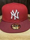 Crafted for the dedicated sports enthusiast, this New York Yankees New Era Big League Chew Fitted Hat is a quintessential accessory for any MLB fan. Featuring a striking red hue, complemented by the iconic Yankees logo, this baseball cap embodies the spirit of the game and the vibrancy of streetwear fashion. The solid pattern and clean design make it a versatile addition to any wardrobe, suitable for a variety of occasions from casual outings to cocktail parties. The cap is available in a size 7 7/8 and is constructed with a focus on comfort and style. It boasts the quality and craftsmanship expected from the New Era brand, known for their premium sportswear essentials. Whether you're at the ballpark or on the streets, this fitted cap ensures a perfect fit and a timeless look for any fan of the sport or the iconic New York Yankees.