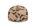 Show your love for the New York Yankees with this officially licensed New Era MLB Duck Camo 96 World Series 59fifty Fitted Hat. The hat features a tan camo design with the team's logo embroidered on the front panel. It has a size of 7 3/4 and is designed for men who are fans of Aaron Judge and the Major League Baseball. This baseball cap is perfect for wearing during regular season games and showing your support for your favorite team. It is a great addition to your collection of sports memorabilia and souvenirs. Get this MLB hat now and be ready to cheer for the New York Yankees during their next game!