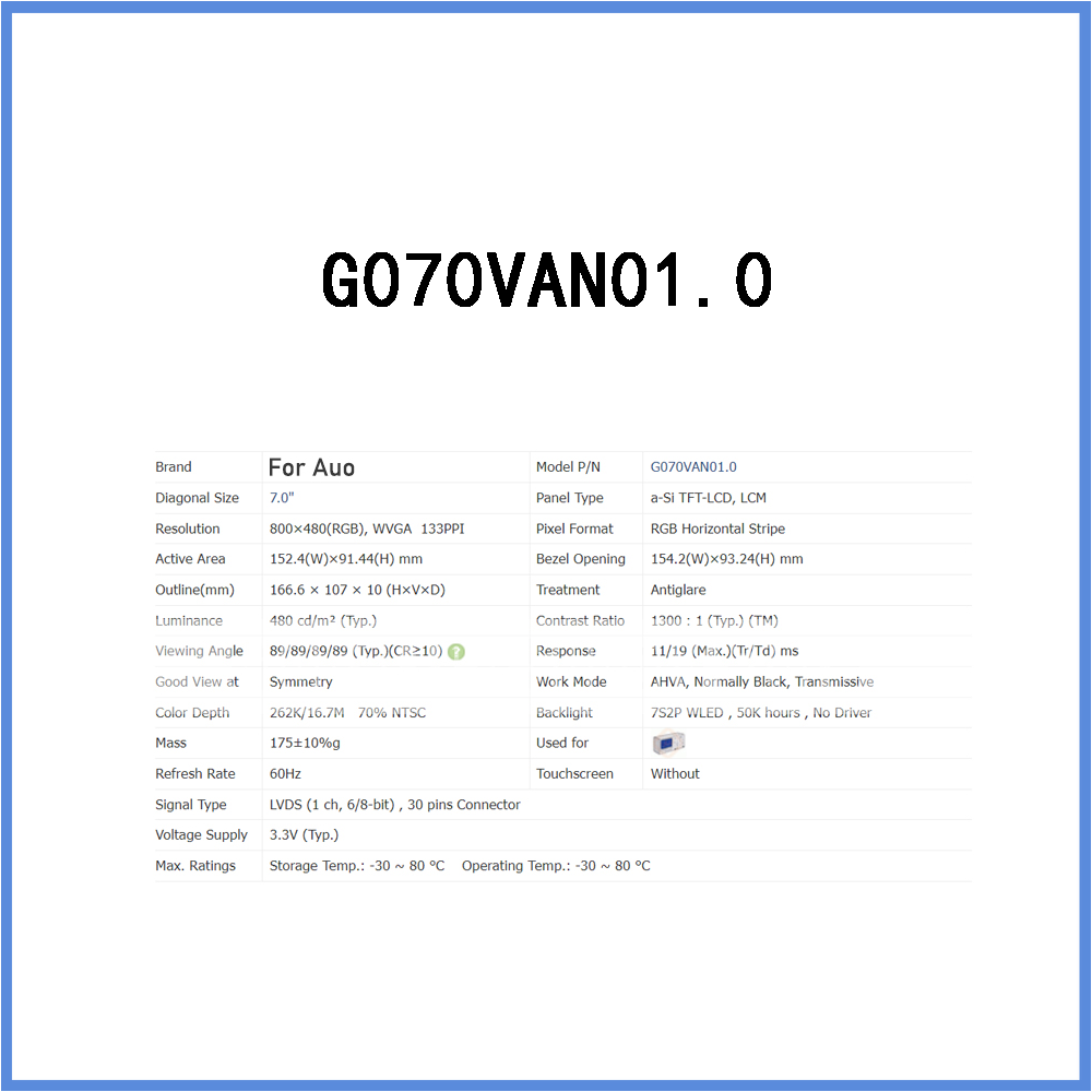 Store Categories Store Categories Computers/Tablets & Networking USB Flash Drives OTG USB Drive Creative Drive Cell Phones & Accessories Cases, Covers & Skins Cables & Adapters Chargers & Cradles Creative Gadgets Consumer Electronics Cameras & Photo Memory Card Readers & Adapters Home & Garden Lighting Parts Other New boxed G070VAN01.0 LCD Display Screen Panel 7-Inch Original for Auo Product Description Our company is mainly engaged in industrial control PLC products, touch screen, relay, power switch, USB accessories, is one of the few quality distributors/agents in China, if you have more needs, or need more quantity, or have other questions, please feel free to leave a message in eBay to contact us, so that we can contact you in a more timely manner, and we will give you more discounts, first-class service, so you can Buy with confidence ------>>>Please contact us! If over 40-55 days still not receive Parcel . Please Contact us (Refund or Resend the Product) ! Fast Shipping and Delivery 100% Brand New ! FEEDBACK. If you have any questions about the product after receiving it. Please contact us first. We keep our promise and will provide you the best solution within 24 hours.Please do not open the box on eBay. We pursue 100% customer satisfaction, so your positive feedback is very important to us. Thank you! About Us. Logistic Shipping Method: About Us. Shenzhen Tengjing Electronics Co., LTD is a B2B and B2C online store dedicated to companies engaged in industrial control electrical Electronic components industry. To facilitate buyers to be able to purchase globally We are not only an industrial control electrical and electronic retailer, but also a wholesale company. We do not have a full listing on eBay. If you are looking in large quantities, please contact us for a better offer. We hope to win your trust through reliable and competitive services. Our aim is customer satisfaction is our most purpose !!!! Logistic Shipping Method: Value over USD:300 We use DHL Express United Parcel, FedEx to send it to you extremely fast so that you can receive the items faster. The average delivery time is for reference only, the actual time varies from country to country, and is related to weather, natural disasters, epidemics and other uncontrollable factors. We can also choose the delivery channel according to the specific item you buy! If you need to specify the courier service, you can send me a message on eBay International customers (buyers) are responsible for all customs fees, import duties, VAT and other fees applicable in their respective countries. Please you must assist with customs clearance if necessary. Copyright © 2023 Dianxiaomi