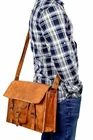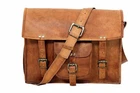 Item Description:- Material- Real Goat hide ( sustained ) Total 3 compartments inside with green color strong canvas lining. This Beautiful bag is having 1 Small Front Pocket 54" long adjustable shoulder broad strap. Real Brass metal accessories used in this Bag. Made by professional and experienced artisans from Rajasthan 100% Genuine goat Skin leather Messenger/Shoulder Bag. Treated by natural ingredients. Natural leather smell will go away within few days from the usage of this bag. Eco friendly and weather resistant.