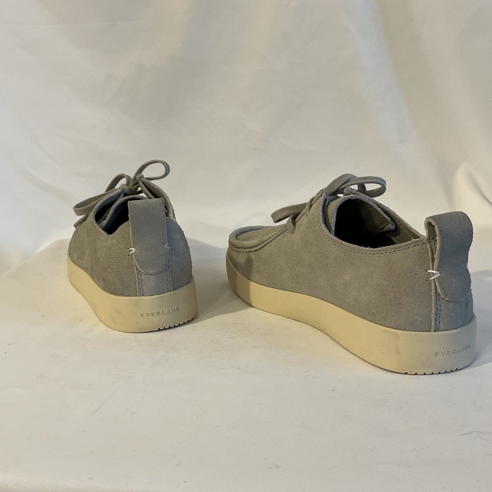 Step into effortless style with these EVERLANE Men's Size 8 Cool Grey Suede Desert Shoes. Crafted with premium leather, these sneakers are a versatile addition to any wardrobe, perfect for casual outings, travel, or adding a touch of sophistication to your workwear. The solid gray color and sleek round-toe design make them a breeze to pair with a variety of outfits. The shoes feature a standard width lace-up closure, ensuring a snug and comfortable fit. Whether you're heading to the office or enjoying the weekend, these shoes provide both durability and timeless style. The solid pattern and quality suede material epitomize modern simplicity, making them a staple in your shoe collection.