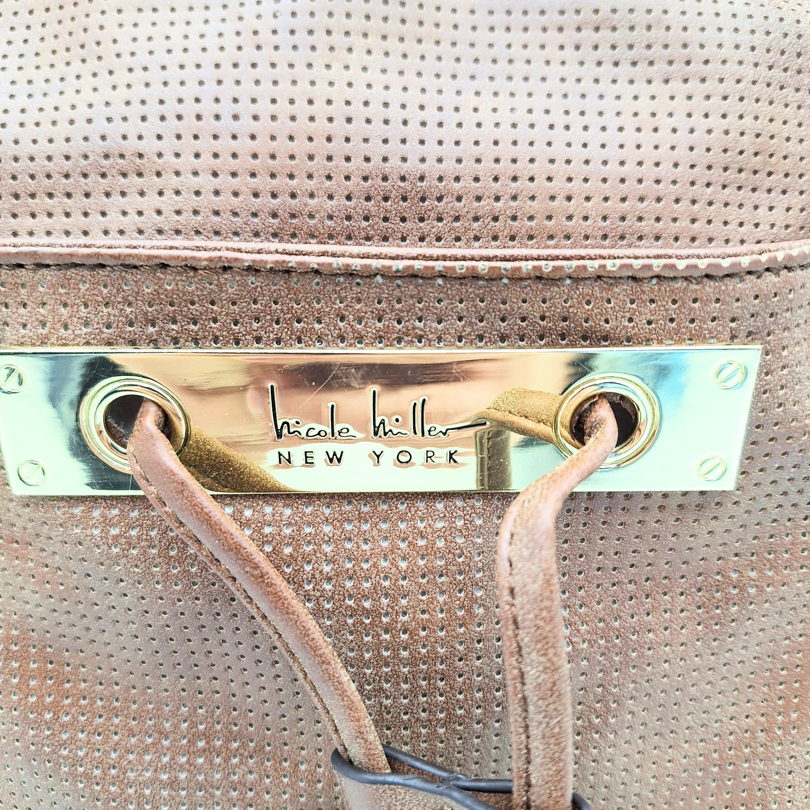 Nicole Miller New York Purse Crossbody Bag Brown Leather W/ Adjustable Strap Dimensions: 12H x 11W x 3D inch Free shipping on orders over $35