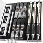 Value Mechanical Pencils Set: The drafting pencil set come with 3 pcs metal mechanical pencils 0.5, 6 tubes HB lead refill (12 pcs / tube), 3 pcs erasers, 9 pcs eraser refills, a plastic pencil case, easy to carry and storage Comfortable Grip: Non-slip chiseled metallic grip inlaid with soft latex-free pads, comfortable to hold. These drafting pencil provides fatigue-free writing and drawing Resists Breaking Lead: The good lead doesn't smudge and erases cleanly, pre-loaded with lead, never needs sharpening, is very durable and will not break easily. The lead advances easily at the touch of a click for easy use Great Weight Balance: The metal mechanical pencil is full-brass metal body gives it a professional look, ideal weight balance at your fingertips for precise drafting and template work, brings you more effective and high quality tasks Ideal Gift Choice: Perfect for writing, draft, drawing, sketch. A great mechanical pencil set for artists, professionals such as engineers, technical, CAD drafting, teachers and students Product Description VALUED MECHANICAL PENCIL SET 1 For Drawing and Sketching 2 For Writing More Choices From Nicpro Mechanical Pencil Add to Cart Add to Cart Add to Cart Add to Cart Add to Cart Add to Cart Add to Cart Customer Reviews 4.6 out of 5 stars 1,613 4.7 out of 5 stars 2,273 4.7 out of 5 stars 2,273 4.6 out of 5 stars 1,613 4.7 out of 5 stars 117 4.6 out of 5 stars 830 4.6 out of 5 stars 830 Price $9.99 $ 9 . 99 $15.99 $ 15 . 99 $15.99 $ 15 . 99 $13.99 $ 13 . 99 $23.99 $ 23 . 99 $7.99 $ 7 . 99 $13.99 $ 13 . 99 Material Metal Metal Metal Metal Metal Plastic Plastic Size 0.5MM 0.5, 0.7, 0.9, 2.0 MM 0.3, 0.5, 0.7, 0.9, 2.0 MM 0.5MM 0.5, 0.7, 0.9, 2.0 MM 0.5MM 0.5MM Lead Refill 6 Tubes Lead Refill 10 Tubes Lead Refill 11 Tubes Lead Refill 6 Tubes Lead Refill 20 Tubes Lead Refill 8 Tubes Lead Refill 8 Tubes Lead Refill Erasers 3 Pcs +9 Pcs Erasers Refill 3 Pcs +9 Pcs Erasers Refill 2 Pcs +9 Pcs Erasers Refill 18 Pcs Erasers Refill 4 Pcs +18 Pcs Erasers Refill 1 Pcs +9 Pcs Erasers Refill 3 Pcs +20 Pcs Erasers Refill Built-in Eraser √ √ √ √ √ √ √