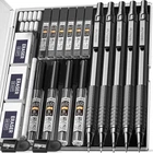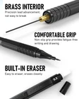 Value Pack: Includes 5 drafting pencils with 0.5mm, 0.7mm, 0.9mm, and 2mm graphite leads, along with 6 tubes of lead refills, 3 erasers, 9 eraser refills, and 2 lead sharpeners for a complete art supply set. Anti-Skid Metal Tube: The lead advances easily with a click and is drop resistant due to the metal threaded design. Weight Balanced Body: The full metal body provides an ideal weight balance for fatigue-free writing and drawing. No Sharpening Needed: The mechanical pencil lead works seamlessly with the drafting pencil for quick and convenient use. Risk Free Purchase: If you are unsatisfied with the Nicpro mechanical pencil set, we offer a hassle-free refund or replacement.