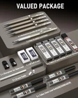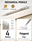 SPECIFICATION: MATERIAL: Metal SIZE: (0.3mm, 0.5mm, 0.7mm, 0.9mm) HB, 2.0mm (2H | HB | 2B | 4B | 12 COLORS ) PACKAGE INCLUDE: 4 × HB Pencils, 1 × Graphite Lead Holders, 4 × Lead Refills, 4× Graphite Lead Refills, 1× Color Lead Refills, 2 × Erasers, 2 × Lead Pointer, 9 × Cap Eraser Refills 【VALUED PACKAGE】: Come with 5 PCS drafting pencils ( 0.3/0.5/0.7/0.9/2.0), with 9 tubes of lead refill in 0.3mm 0.5 mm & 0.7mm & 0.9mm (HB) + 2.0 mm(4B, 2B, HB, 2H, CR) , 2 pcs erasers, 9 pcs cap eraser refill, 2 lead sharpener, a cute storage case for orderly organized 【PREMIUM QUALITY】The full-brass metal body provides ideal weight balance for fatigue-free writing and drawing. It brings you more effective and high quality tasks. 【4 PCS Mechanical Pencils】: 4 mm tip length makes it ideal for use with rulers and templates, various line size (0.3 mm,0.5 mm,0.7 mm & 0.9 mm) satisfy your demand. Polygon shape of these mechanical writing pencils avoids sliding on drawing tables. In addition, the pencil is pre-loaded with a 90mm-lead. (with each 60pcs extra lead refill for 0.3, 0.5, 0.7, and 40pcs 0.9 pencil lead refill.) 【2 PCS 2mm Lead Holder】: Metal Threaded Anti-skidding pen tube with sharpener in the cap of 2.0 mm mechanical pencil, Extra 2pcs lead sharpener are also provided for the 2.0 lead to keep the fine point as they dull. And an extra colored lead refill for your wonderful painting. 【PERFECT GIFT】Ideals for artists, professionals, teachers and students alike. Perfect for writing, drafting, drawing, sketching. The pencil set is especially as Christmas Gift Pencils for children, friend, workmate or family that with a exquisite case.