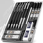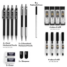Package Included 0.3 mm mechanical pencil x 1 0.5 mm mechanical pencil x 1 0.7 mm mechanical pencil x 1 0.9 mm mechanical pencil x 1 2mm mechanical pencil x 2 4 tube HB lead refills (0.3mm/0.5mm/0.7mm/0.9mm) 4 tube 2mm lead refills(2H HB 2B 4B) 4B soft eraser x 2 lead sharpener x 2 cap eraser replacement x 9 Durable Metal Body: The full-brass metal body provides ideal weight balance for fatigue-free writing and drawing. Versatile Tip Sizes: Comes with 4mm mechanical pencils with 0.3mm, 0.5mm, 0.7mm and 0.9mm tips for various line sizes. Lead Holder and Sharpener: Includes 2 metal threaded anti-skidding pen tubes with sharpeners for the 2.0mm lead. Erasers and Refills: Comes with 2 erasers and 8 refill tubes for the mechanical pencils. Ideal for Artists and Students: Perfect for writing, drawing, sketching, drafting and more for artists, professionals, teachers and students.