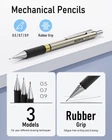 Easy replace refills 1.pencil. Press the top of button and make it no sprang back. Inset this refill and adjust the refill as a safest length 2.Please kindly be noted that the refills you should make it shorter as you could write. It will as larger as great assistance for protection for your refill being broken. Package Included: 3 x Mechanical Pencils 0.5-0.7-0.9mm leads 3 x Graphite Lead Holders 2B-HB-2H pencils 6 x Lead Refills (24 refills for each 0.5-0.7-0.9 mm) 6 x Graphite Lead Refills (12 refills for each 2B-HB-2H pencil) 3 x Erasers (5x2x1 cm) 6 x small cap erasers refill Value Package :Come With 6 PCS mechanical drafting pencils ,including 0.5 mm & 0.7mm & 0.9mm and 2mm ,12 tubes of refill : 0.5mm & 0.7 mm & 0.9mm ,2.0 mm (2B HB 2H) , 3 PCS of erasers , 9PCS of cap eraser refills, 2 PCS sharpener and a mechanical pencil case 4 Line Size & 3 Hardness: This awesome pencil set come with several size of lead refills for various line widths:0.5/0.7/0.9/2.0,the 2mm graphite pencil come with 3 hardness lead 2B HB and 2H to create different darkness, perfect for your daily use,they don't break easily, and write smoothly Ergonomic, Comfortable Design :The full-metal body provides ideal weight balance for fatigue-free writing and drawing or sketching, It brings you more effective and high quality tasks. The lead advances easily at the touch of a click. There is a sharpener in the cap of 2.0 mm mechanical pencil Two Type Anti-Slip Grips: Rhombus textured rubber grips and metal threaded anti-skidding, these pencils adopt different grip design base on pencil weight and applicable scene, only for better experience Perfect School Supplies :Ideals for teachers and students, artists, professionals,engineer alike. Perfect for writing, drafting, drawing, sketching or architectural working. Back to the basics! it will be also a great gift for your kids,parents,other family members and friendsts, professionals, teachers and students alike. Perfect for writing, draft, drawing, sketch