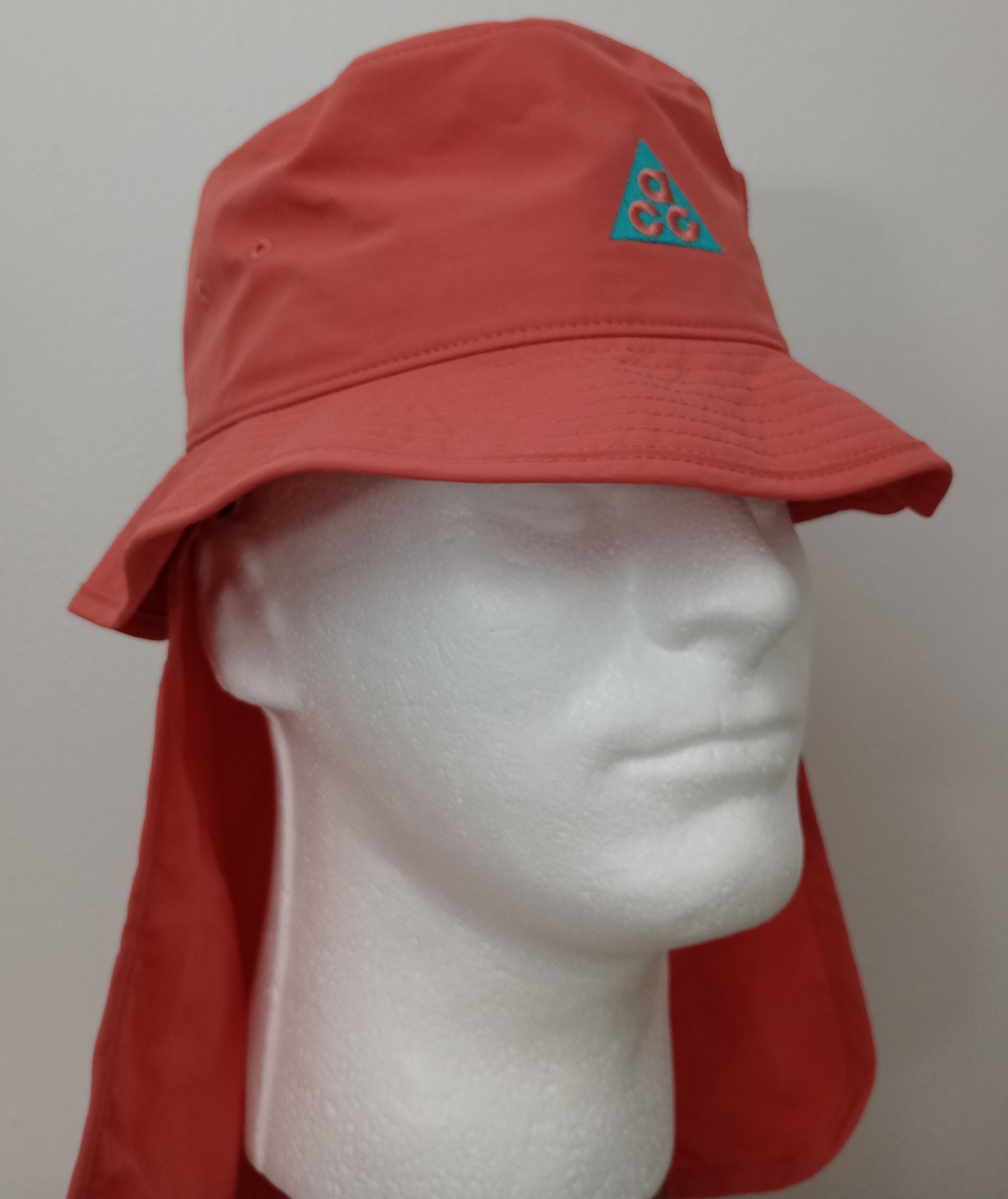 Nike Men's ACG Apex Removable Neck Flap Bucket Performance Hat Color Peach Size Small . This isn't your typical bucket hat. A removable back flap provides extra coverage while a small, zippered pouch gives you storage options. But our favorite part is the hidden allover print that reveals itself when the fabric gets wet. Benefits Apex bucket hats all have a mid depth and 360-degree coverage. Removable back flap provides added coverage. Zippered pouch with exterior pocket provides storage for small essentials. Product Details Face of body fabric, back panel, bill and side pocket knuckle side: 100% nylon. Back of body fabric: 100% polyester. Embroidered ACG logo Hand wash Imported