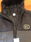 The Nike Air Therma-Fit Jacket for men in size XXL is a stylish and practical puffer jacket designed for casual occasions. Made with polyester material, both the outer shell and lining provide warmth and comfort during the winter season. Featuring a full zip closure, hood, and moisture-wicking features, this jacket is perfect for outdoor activities like skiing and walking. With a solid black color and Nike branding, this jacket is a versatile addition to any man's winter wardrobe. Easy to care for with machine washable instructions, this jacket from the Nike Dri-FIT product line is a must-have for staying cozy and stylish in cold weather.
