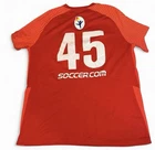The Nike Dri-FIT Real Colorado Soccer Jersey is a men's large red shirt with a crew neck and short sleeves. It features a lightweight and breathable fabric wash, making it ideal for activewear during any season. The jersey is designed with a mild compression level for a comfortable fit during soccer games or casual activities. The Nike Dri-FIT technology ensures moisture-wicking performance, while the logo accents add a stylish touch to the uniform. Perfect for sports enthusiasts looking for quality and performance in their activewear tops.