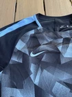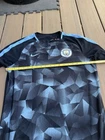 Crafted for the dedicated soccer enthusiast, the Nike Dri-FIT Large MCFC Manchester City Training Shirt embodies both performance and style. The blue jersey, accented with a distinctive graphic print, features a comfortable crew neck and short sleeves, ideal for athletic activities. Its breathable fabric ensures you stay cool and dry on the field or while you're racking up the miles on your run. The shirt is a testament to Nike's commitment to quality, made with high-quality polyester and designed to keep up with the demands of your active lifestyle. Whether you're hitting the pitch or the streets, the shirt's athletic fit and pullover closure provide a snug, comfortable feel. Proudly made in Thailand, it's a piece that's as ready for action as you are.