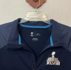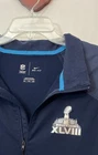 The Nike Dri-Fit Men's NFL Super Bowl XLVIII Seahawks vs Broncos Blue 2XL Jacket is an officially licensed product. Made for men, this jacket is designed in blue color and showcases the team's association with the National Football League (NFL) and their participation in the Super Bowl. With the Nike branding and Dri-Fit technology, this jacket is ideal for football fans looking to show their support for the Seahawks in style. Length: 33 inches. Chest: 26 inches across laying flat.