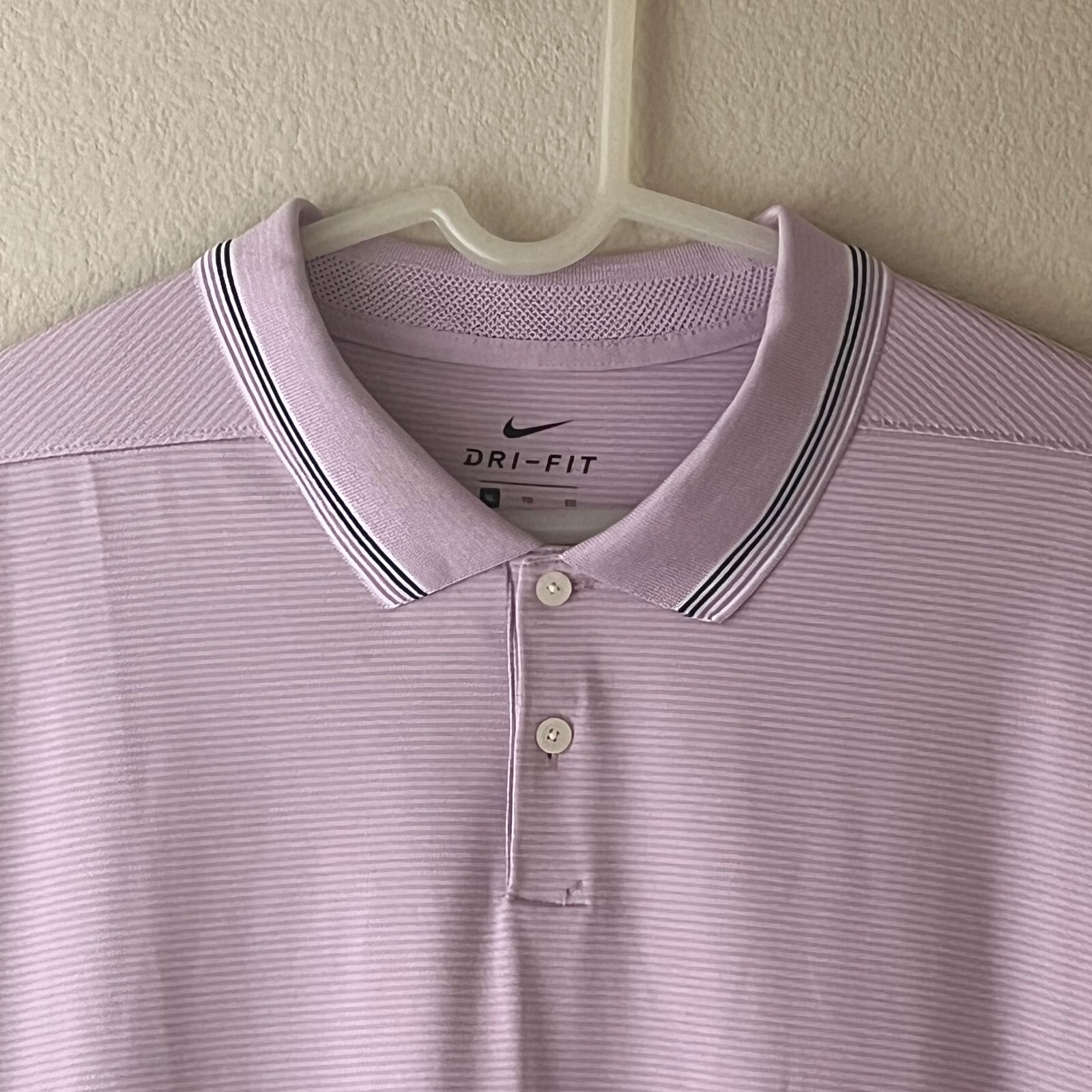 Nike Dri-FIT Vapor Men's Golf Polo Shirt XL Pre-owned in Good Condition The Nike Dri-FIT Vapor Polo updates the classic polo with an allover stripe pattern. Stretchy fabric with sweat-wicking technology helps you stay dry when your round heats up. 26" Pit to pit 30" Back collar to hem Dri-FIT technology helps you stay dry, comfortable and focused. Standard fit follows your body with added room for mobility. Rolled-forward shoulder seams let you move freely. Jersey fabric with spandex moves with you. Stripes are dyed into the fabric. Perforated collar stand enhances breathability. 2-button placket lets you adjust your fit. Faux pearl buttons add a sophisticated finish. Fold-over collar delivers classic polo style. 94% Polyester, 6% Spandex Style: 891855-543 Thanks for looking! Check out my other items for more great deals! Return Policy We accept return within 30 days of the original purchase date. The item must be in original, unworn condition to be eligible for a refund.