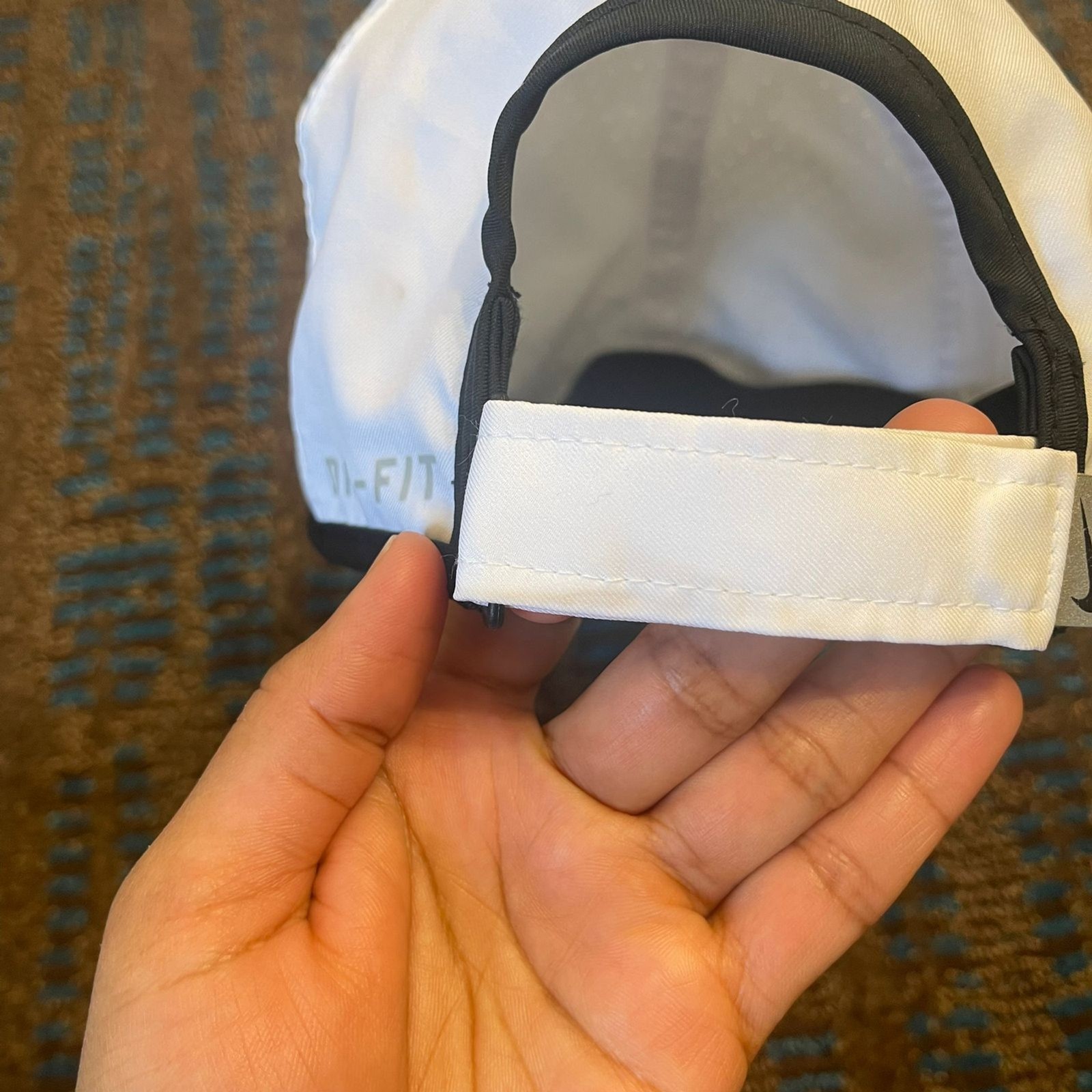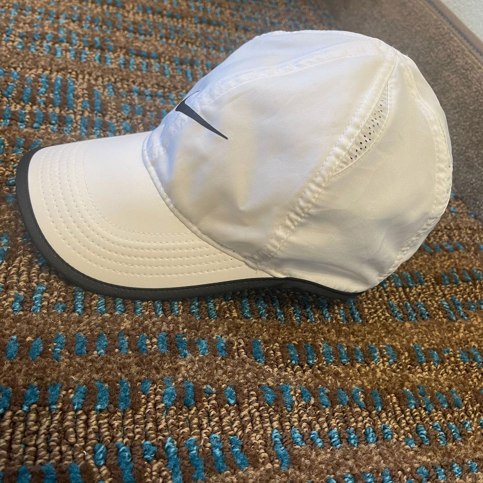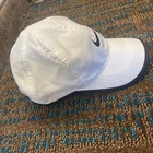 Stay cool and comfortable during workouts with this Nike Featherlight Comfort Cap, designed for performance and everyday athletic wear. Made with Nike Dri-FIT technology, this lightweight cap helps wick away sweat while providing excellent breathability—ideal for running, tennis, training, or casual sportswear. The sleek white design features a curved brim for sun protection and an adjustable back closure for a secure, customized fit. A favorite among athletes, this cap delivers comfort without bulk, making it perfect for warm-weather activities. Details: Brand: Nike Model: Featherlight Technology: Dri-FIT moisture-wicking Color: White Style: Baseball / Performance Cap Fit: Adjustable, one size fits most Features: Lightweight, breathable, curved brim Use: Running, tennis, training, sportswear Condition: Pre-owned in excellent condition. Some unnoticiable light stain which might go with wash. A reliable, stylish athletic cap for active lifestyles.