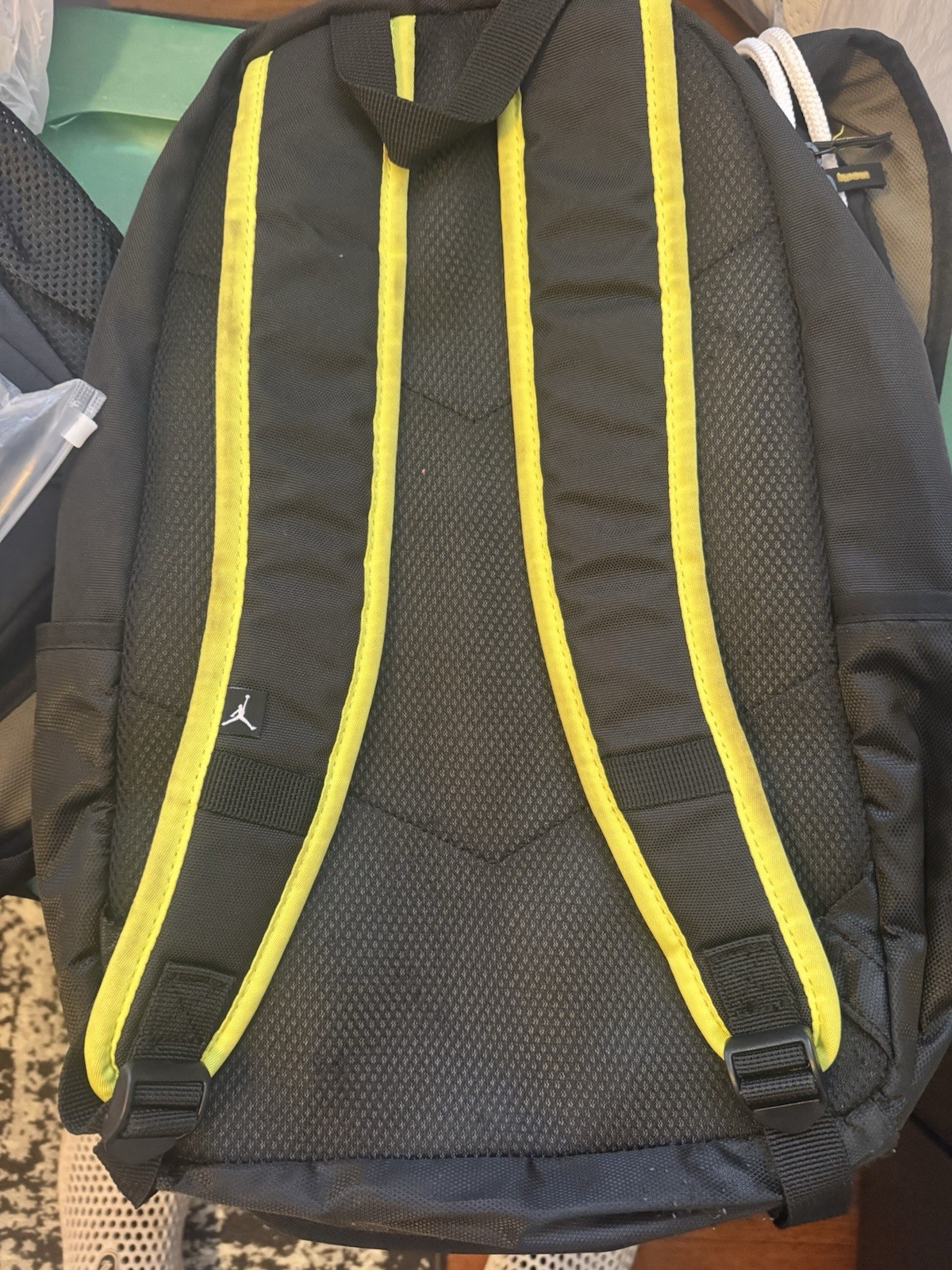 The Nike Jordan Jumpman Black backpack is a stylish and practical accessory for men. With a large size and multiple pockets, this backpack is ideal for casual occasions and school or work. Featuring the iconic Jumpman logo and black color scheme, it combines fashion and functionality. The adjustable strap and sturdy construction make it a versatile choice for everyday use. Perfect for storing your laptop and other essentials, this backpack is a must-have for any Jordan fan.