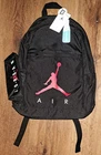The Nike Jordan Kids Backpack is a large-sized, solid black backpack designed for school and sports activities. Made of durable polyester and nylon canvas, it features a zip closure, adjustable shoulder strap, and various inner and outer pockets for organization. The backpack is waterproof, lightweight, and water-resistant, with breathable fabric for added comfort. The design includes iconic Michael Jordan branding and accents like straps and zippers, making it a stylish and functional choice for young boys on the go. Additionally, it comes with a matching pencil case for added convenience.