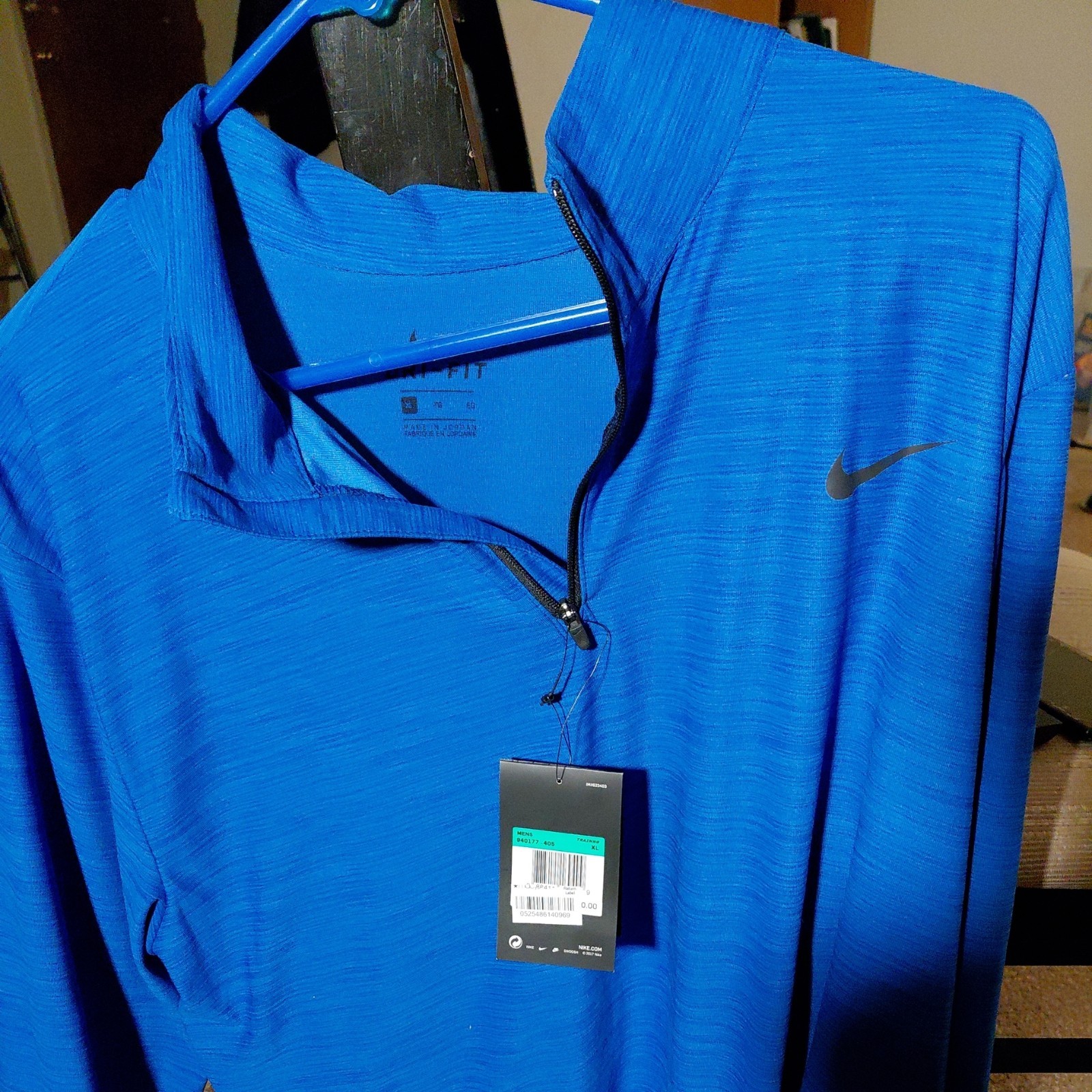 The Nike Mens XL Superset Quarter Zip Performance Training Top in Blue is a versatile and stylish activewear piece designed for men. This pullover top features a mock neck with a stand-up collar, a 1/4 zip closure, and a lightweight polyester material that is moisture-wicking and tagless for comfort. Suitable for gym training, running, and jogging, this Nike Dri-FIT top is solid black with a subtle logo accent, making it a classic choice for sports activities in the winter, fall, and spring seasons. Easy to care for with machine washable instructions, this top is a must-have for any active man's wardrobe.