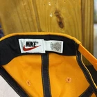 Nike Hat Cap Snap Back Orange Embroidered Swoosh Athletic Sports Mens Logo Condition: Good - light wear, minor signs of use, faint discoloration spot on left front panel as pictured Classic orange base with iconic embroidered metallic silver swoosh on front Six-panel crown with vent holes and curved bill Adjustable plastic snap back closure with Nike logo on strap Authentic Nike internal label and branding Interior features contrast black seam taping and green underbill Made in Taiwan 100% cotton construction Unisex fit, best for adults (Mens sizing default) Great for sports, casual wear, or adding a pop of color to any outfit