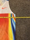 The Nike Pro 2025 Team Issued Racing Singlet is a high-quality, sleeveless jersey designed for track and field athletes. Made from lightweight and breathable polyester material, this shirt features moisture-wicking technology to keep you dry and comfortable during intense workouts. The crew neck and athletic fit make it suitable for active occasions, while the multicolor design with a spotted pattern adds a stylish touch. Perfect for men in size large, this Nike Pro Elite singlet is a must-have for any athlete looking to perform at their best.